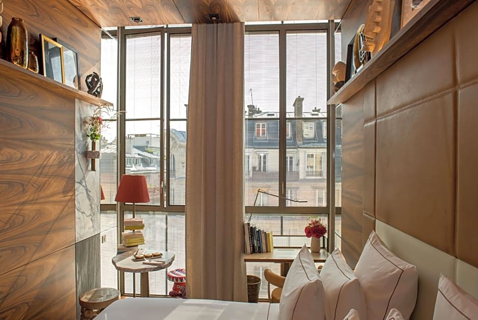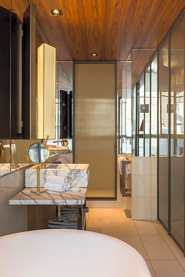 This suite has bay windows overlooking a tree-filled terrace with an outdoor spa bath and panoramic views of the Parisian rooftops. Equipped with a living room and a separate bedroom, this suite features a bathroom with a bath and shower. Guests can enjoy a cocktail or dinner from the comfort of the suite, for a fee. Guests can enjoy a free private access to the vegetable garden on the hotel's rooftop.